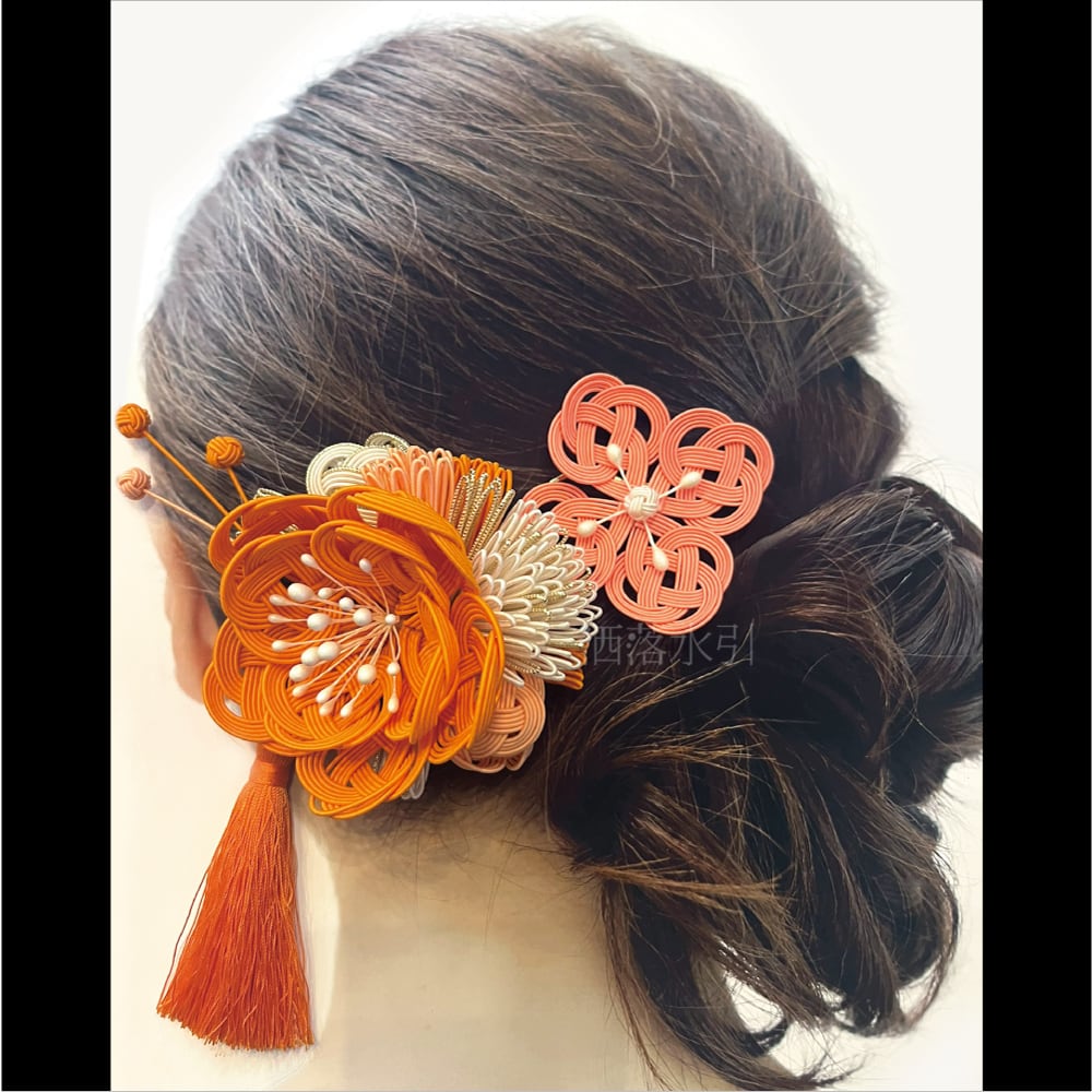 【在庫あり・1/4発送】水引の髪飾り 蜜柑色コーディネートセット