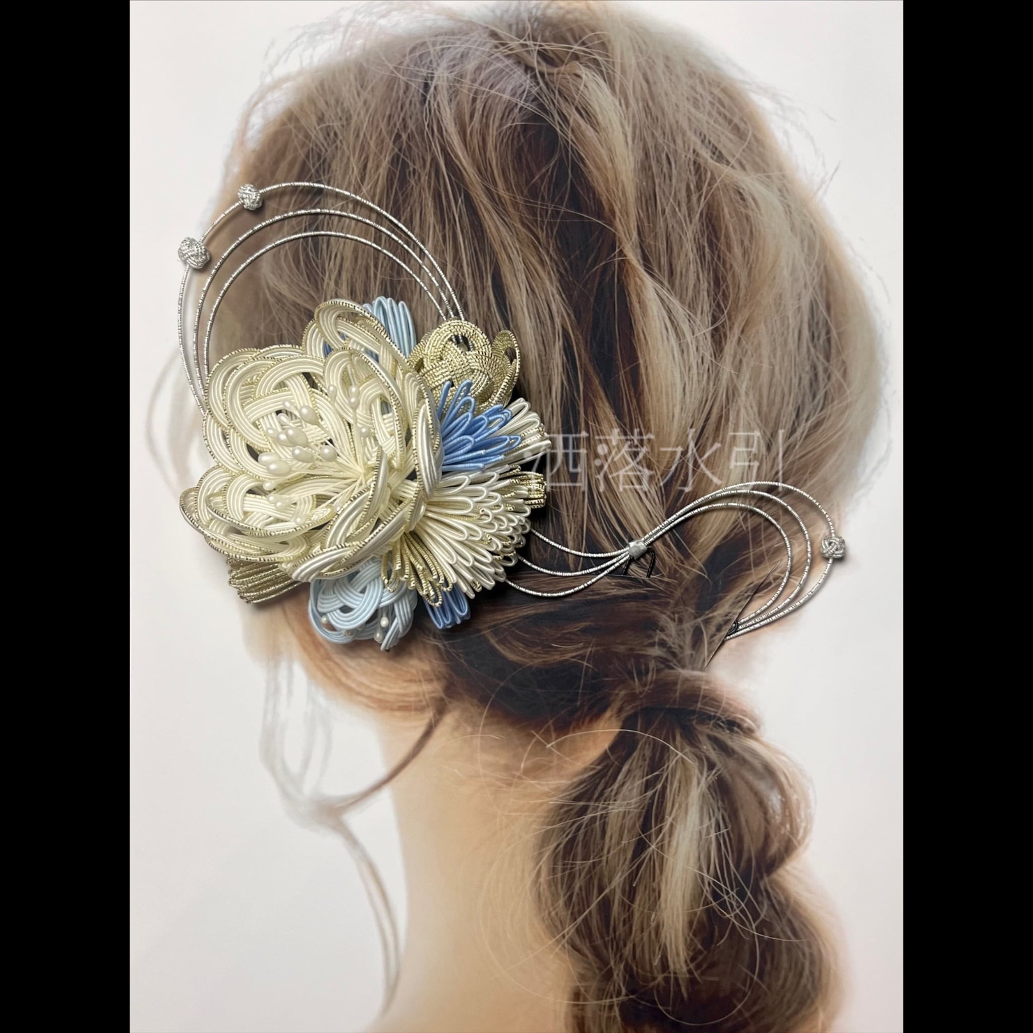 【在庫あり】水引の髪飾り 水縹色シルバー コーディネートセット