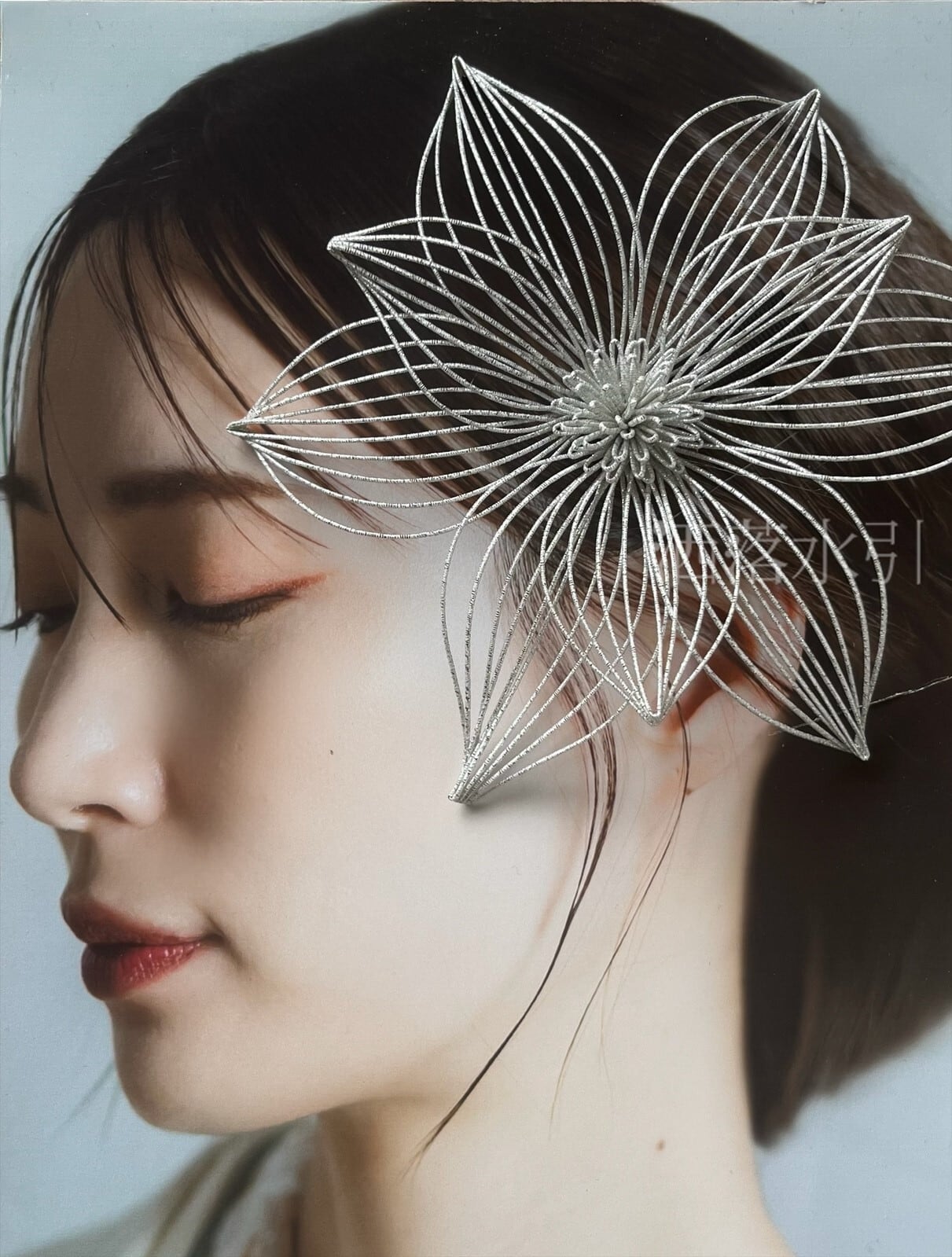 凛とした華やかさが人気の、クレマチスの髪飾り。